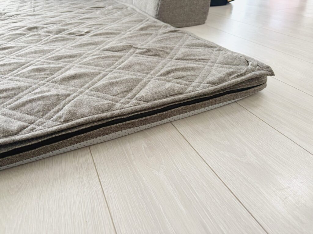 我が家のソファラグ、さすがにこの厚みは登れませんでした(;^_^A通常のラグなら十分登れます。